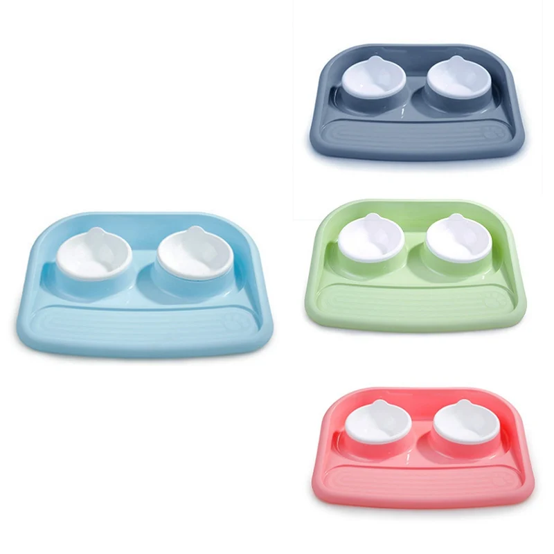 Green environmental protection food grade plastic bone type double bowl pet bowl splashproof dog bo