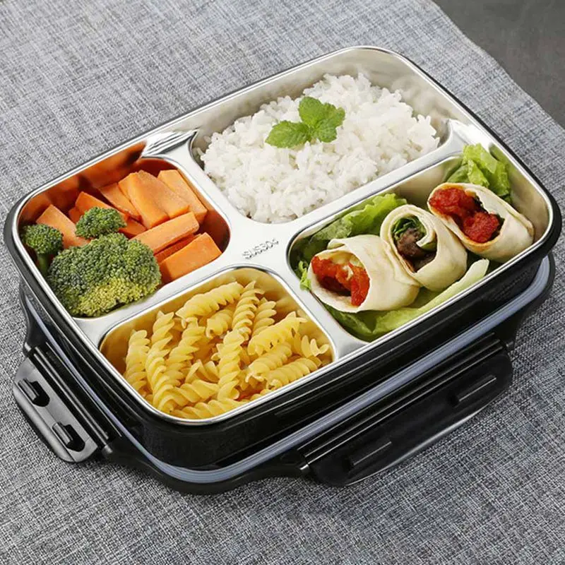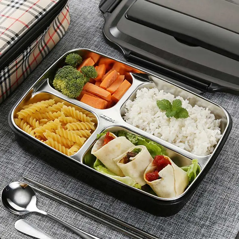 Review Top 304 Stainless Steel Lunch Box Leak-proof Lunch Bento Boxes Dinnerware Set Microwave Adult Children