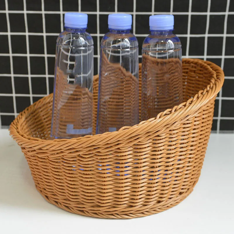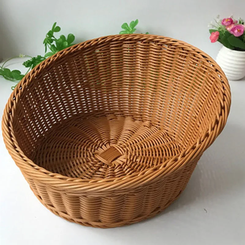 Household Storage Basket Bevel Round Shape Food Bread Fruit Wicker Basket Organizer Home Kitchen Ba
