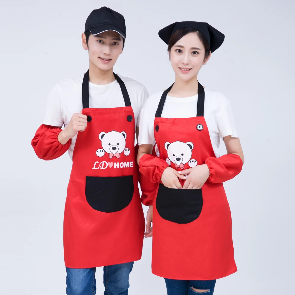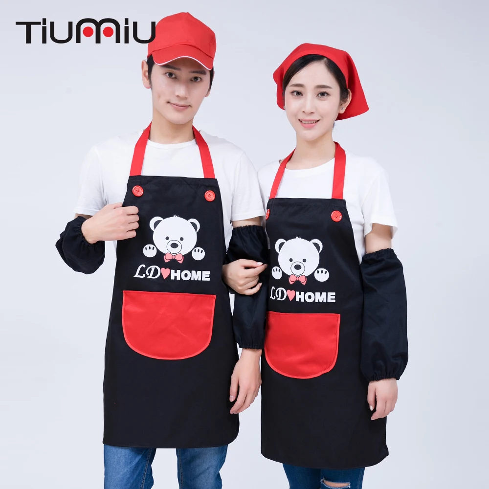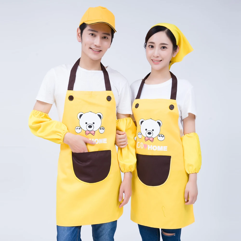 HIGH QUALITY Kawaii Cute Bears Print Chef Apron with Pocket Hanging-Neck Chef Uniforms Kitchen Cafe Hotel Food S