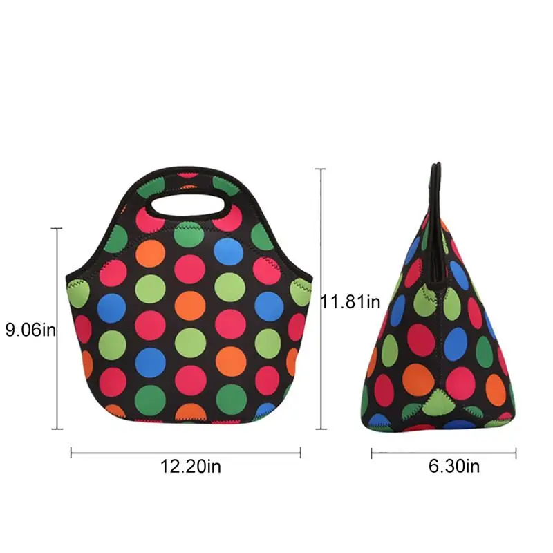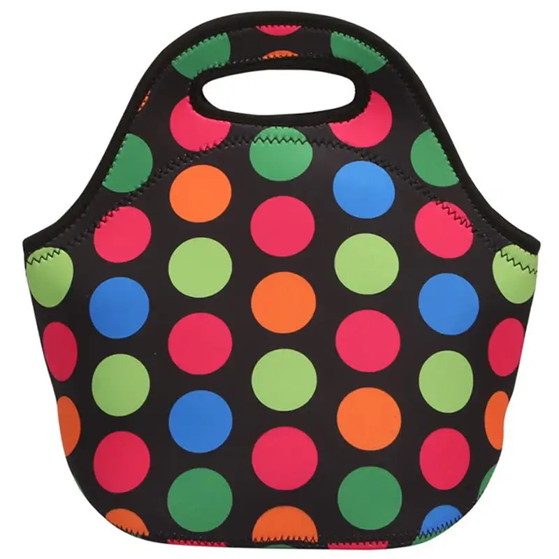 Lovely Neoprene Insulated Thermal Lunch Bag Adult Colorful Dots Lunch Cooler Bag Tote For Children