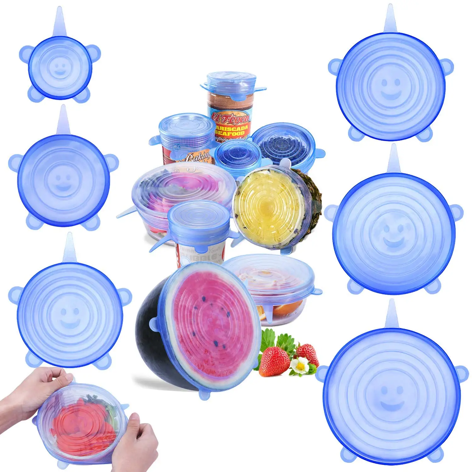 Silicone Stretch Lids7-Pack Various Sizes Cover for BowlSuperior for Keeping Food Fresh Dishwasher