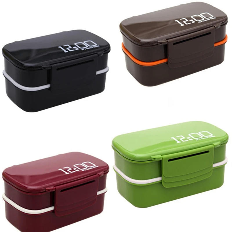 Best Quality Large Capacity 1400Ml Double Layer Plastic Lunch Box Microwave Oven Bento Box Food Container Lunchb