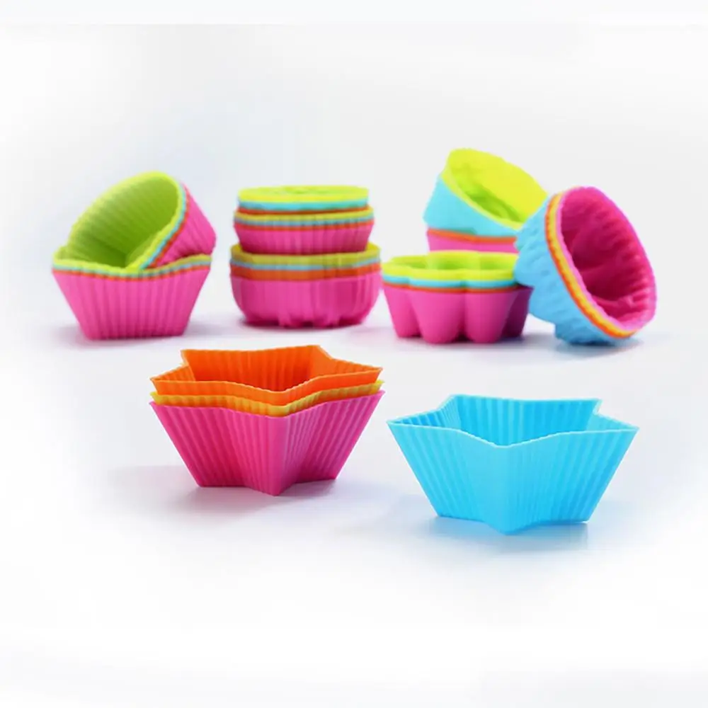 36-Pack 9 Shapes Silicone Muffin Cups Food Grade Cupcake Baking Mold Cake Cup Sets Reusable Baking